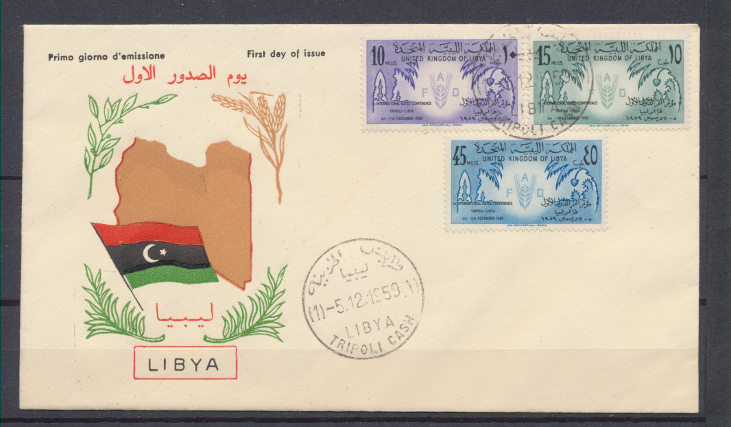 Storia Postale FDC Libia 1959 1 conferenza internazionale dei Datteri FAO