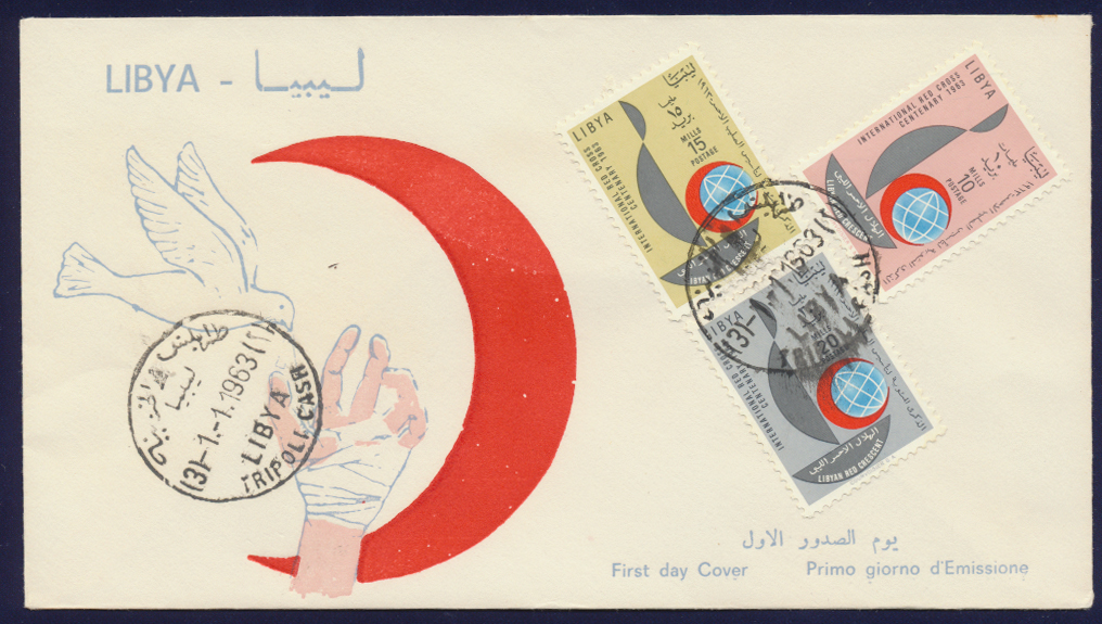 Storia Postale FDC Libia 1963 Centenario della Croce Rossa