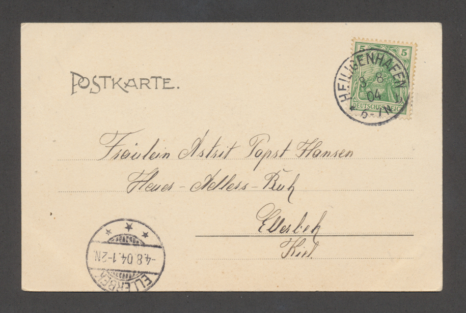 ottime condizioni, cartolina viaggiata, Cartoline, Cartoline Europa, Cartoline Germania, Francobolli, Francobolli Germania, francobollo Deutsches Reich, Storia postale, Storia Postale Europa, Storia Postale Germania, tematica paesaggistica, timbri Germania, Timbro Heiligenhafen , timbro Ellerbek
