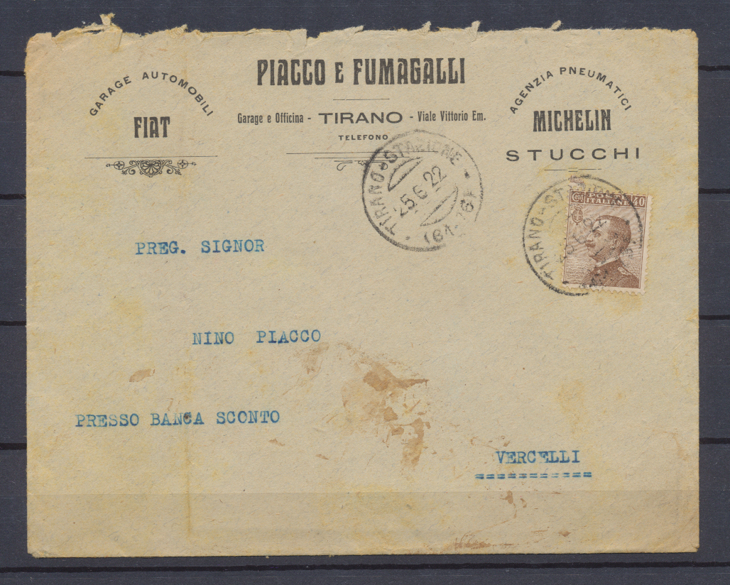 Recensisci per primo “Storia Postale Lettera Italia Regno 1922 con Michetti 40c da Tirano a Vercelli”