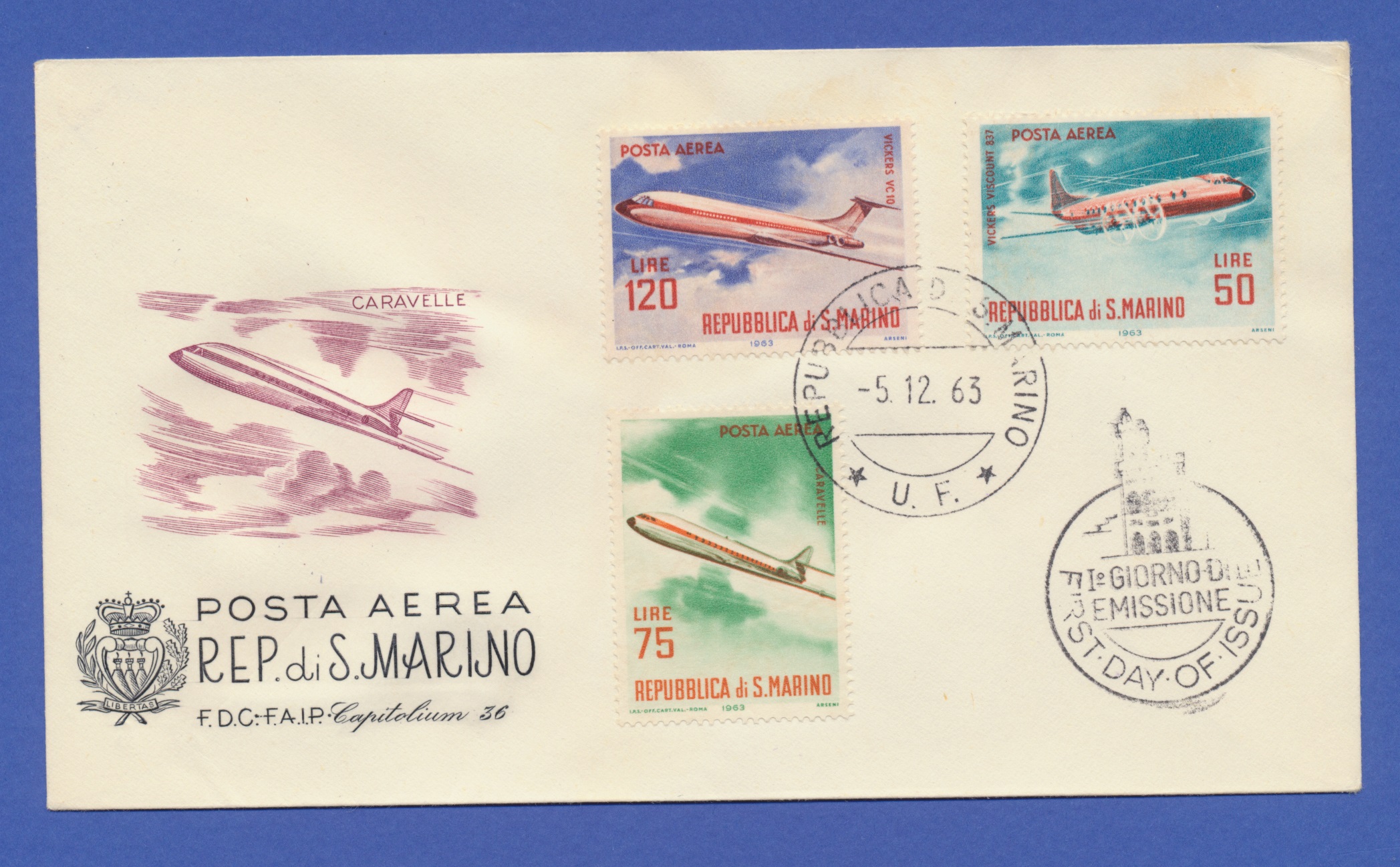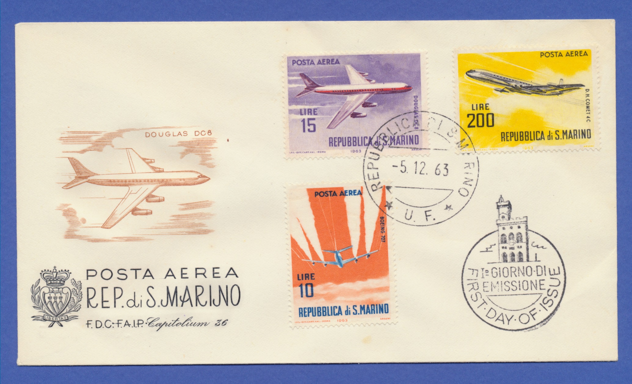 Lotto 3 FDC San Marino 1963 Posta Aerea (Capitolium n.36)